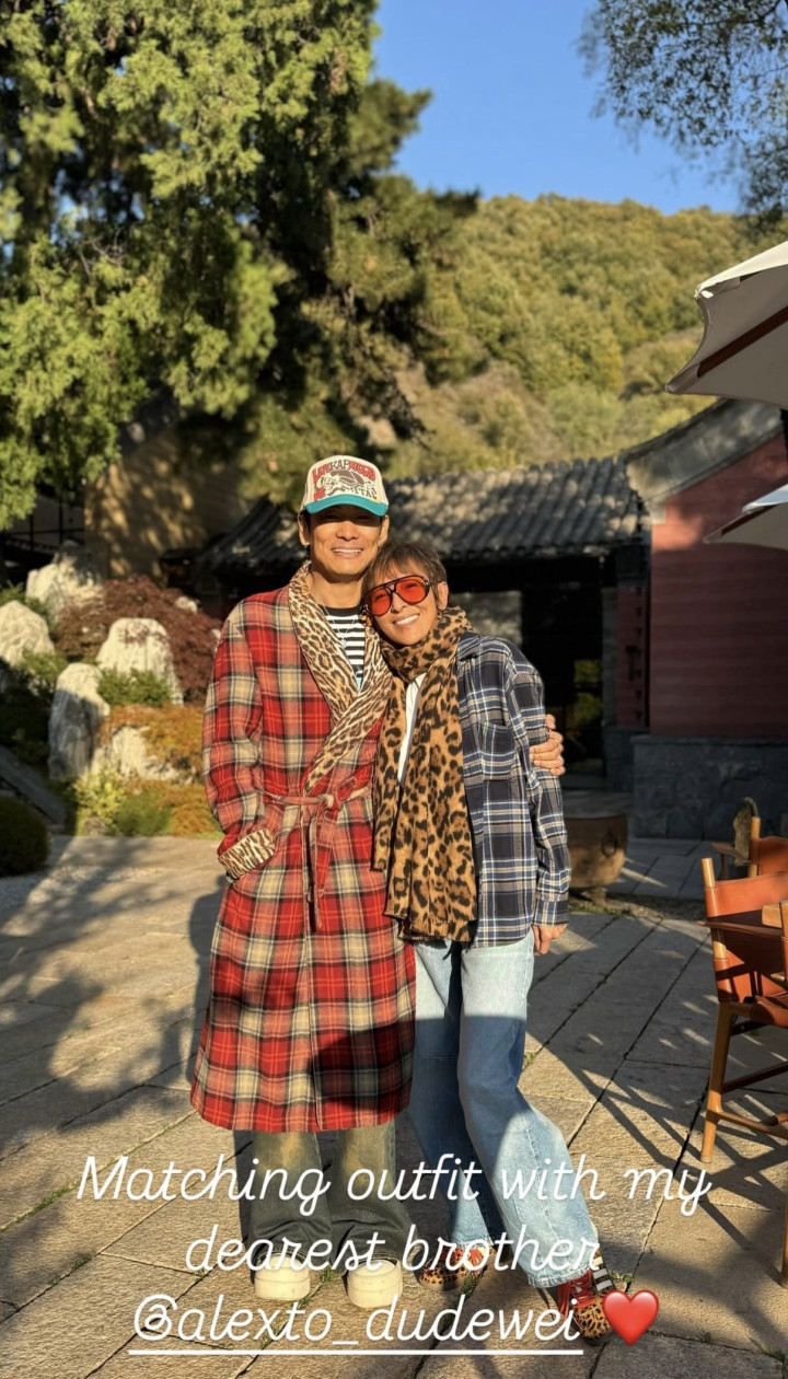 北京正值深秋,秋高气爽,天气不算特别冷,还是相当宜人。众人也没有去人多的地方,而是到了郊野很美的地方度假,享受美好的假期。同行的上山诗钠晒出了在北京相聚的照片,当天天气万里无云,阳光正好,不过毕竟是深秋,又临近黄昏,所以天气还是颇为寒凉,在打扮上大家都穿了不少,其中杜德伟穿了红色格纹外衣,范姜素贞已经穿了黑色长款棉袄,钟嘉晴也穿了黑色大大衣。
