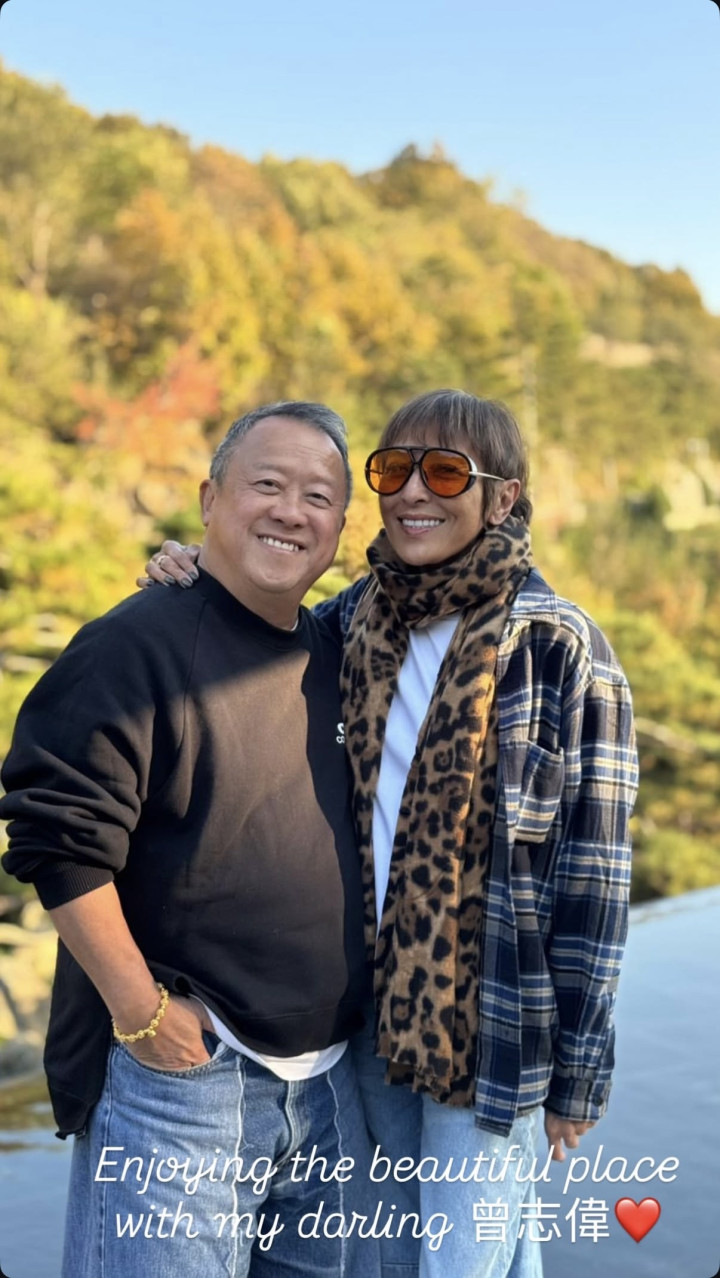 倒是曾志伟看起来比较耐寒,并没有穿得很厚重,以时尚、简约为主。曾志伟在日常生活中,打扮一直紧随潮流,当天他穿了阔腿牛仔裤,上身是黑色的卫衣,卫衣还挺特别的,前短后长。不知道是方便照相,还是对他来说天气真不算冷,他还把袖子撸起来,露出手臂,手上的那一串金链特别显眼。曾志伟与上山诗钠、钟镇涛分属好友,特别与钟镇涛相识数十年,继而与他的家人都相熟,所以大家相聚在一起相互照应,吃饭、聊天,相当开心。