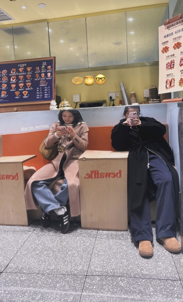钟镇涛的女儿钟嘉晴在较早的时候就已经在北京生活,大概是协助妹妹在当地的生活以及负责接洽相关的演出工作,所以她对北京颇为熟悉。此次继母范姜素贞到北京来,她全程陪伴,除了招呼父亲等友人的行程外,母女俩闲时还外出走走逛逛,一起去吃小吃、逛街等。钟嘉晴晒出了母女俩在华夫饼店等餐时的照片,范姜素贞在玩手机,钟嘉晴在旁透过镜子自拍(偷拍),这一幕也显得颇为温馨。