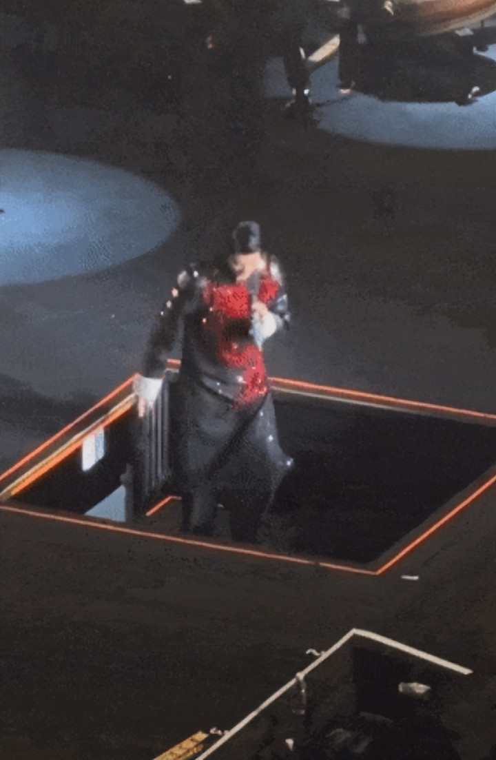 从现场视频能清楚地看到,T形舞台的边上根本没装护栏,舞台上灯光还挺暗的,歌手很难看清边缘在哪儿。 一般来说,露天体育馆里的T形舞台高度不会超过1.2米,要是超过了,就得在舞台边缘装上20到30厘米高的护栏,或者至少弄个提示灯条。