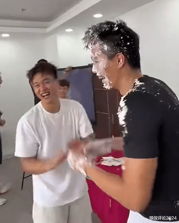 今天也是焦泊乔的24岁生日,广东全运男篮特意为焦泊乔准备了蛋糕庆祝,虽然是首次在这一届的全运会集结,但这一批球员大部分都是以前在广东效力为主,庆生的画面自然少不了被砸蛋糕的名场面。