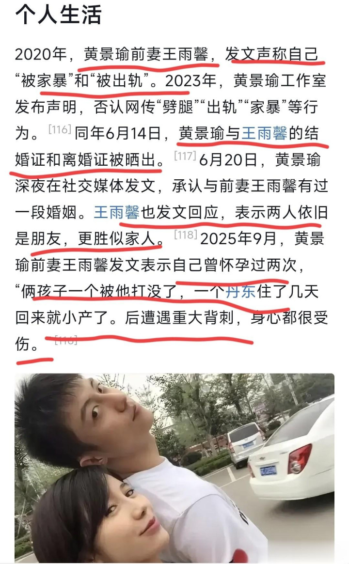 在2025年9月份,王雨馨还发文称自己曾经两次小产,后面还遭遇了背刺,身心都受到伤害。对于后面的说法,黄景瑜本人以及工作室都是沉默应对,不否认,不承认。