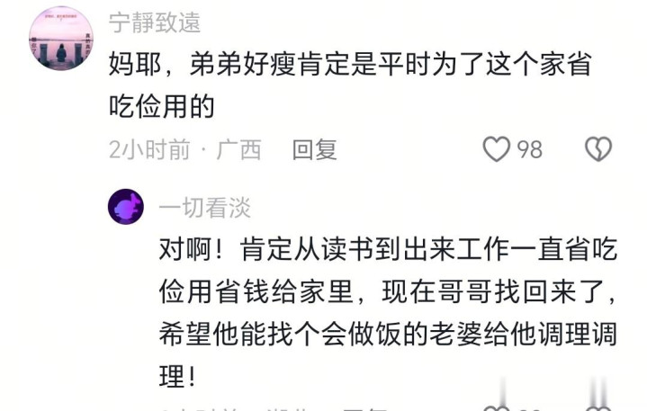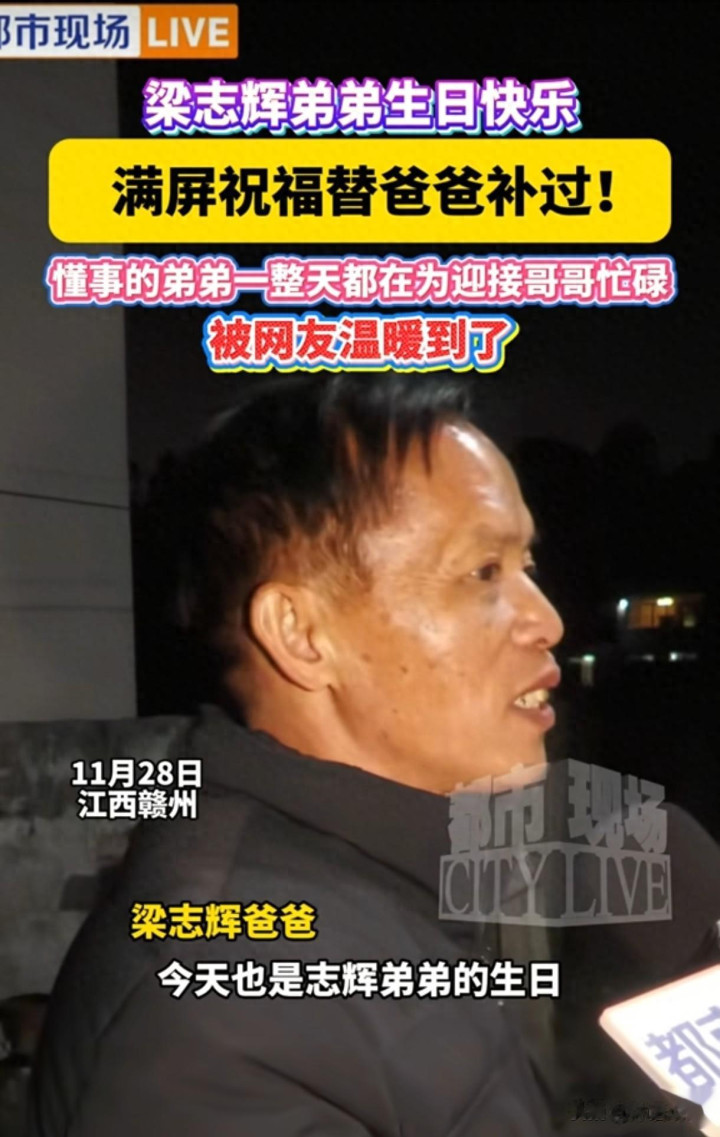 读书有用,读书真的能改变命运,在梁志辉弟弟身上得到了最好的诠释。 梁志辉丢了30年,爸爸找了30年,弟弟今年27岁,就是说从弟弟出生那一刻起,爸爸就一直忙着找哥哥。一年360天,梁爸有一半时间在外边奔波,在弟弟的成长过程中,肯定或多或少的缺少了陪伴与照顾,但弟弟对爸爸没有任何抱怨和不不满。 弟弟长相清秀,很内敛,说起话来很斯文,瘦瘦弱弱的,听说这么多年都是省吃俭用,把省下来的钱都给家里。 他浑身上下散发着书卷气,一看就是学霸。