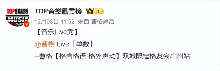 近日,曹格开始奋斗自己的事业,“格言格语·格外声动”演唱会正在火热进行中。